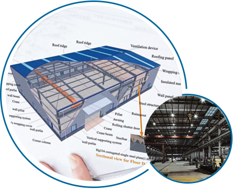 圍護系統(tǒng):普通彩鋼單板,夾芯板,鋁鎂鋅單板,到各種復(fù)合夾心聚脂、巖綿、發(fā)泡板等圍護系統(tǒng)從材料到項目施工應(yīng)有盡有。